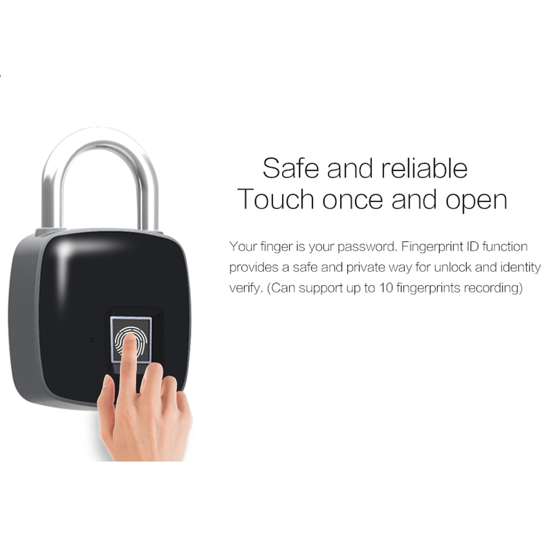 - Possibly the most secure lock ever. No Keys, no password to remember, only the recorded fingerprint(s) can open this lock.