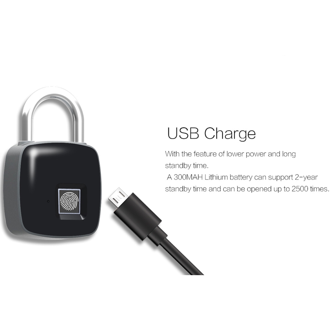 300MAH Lithium battery can stand by for 2 years or 2500 unlocks