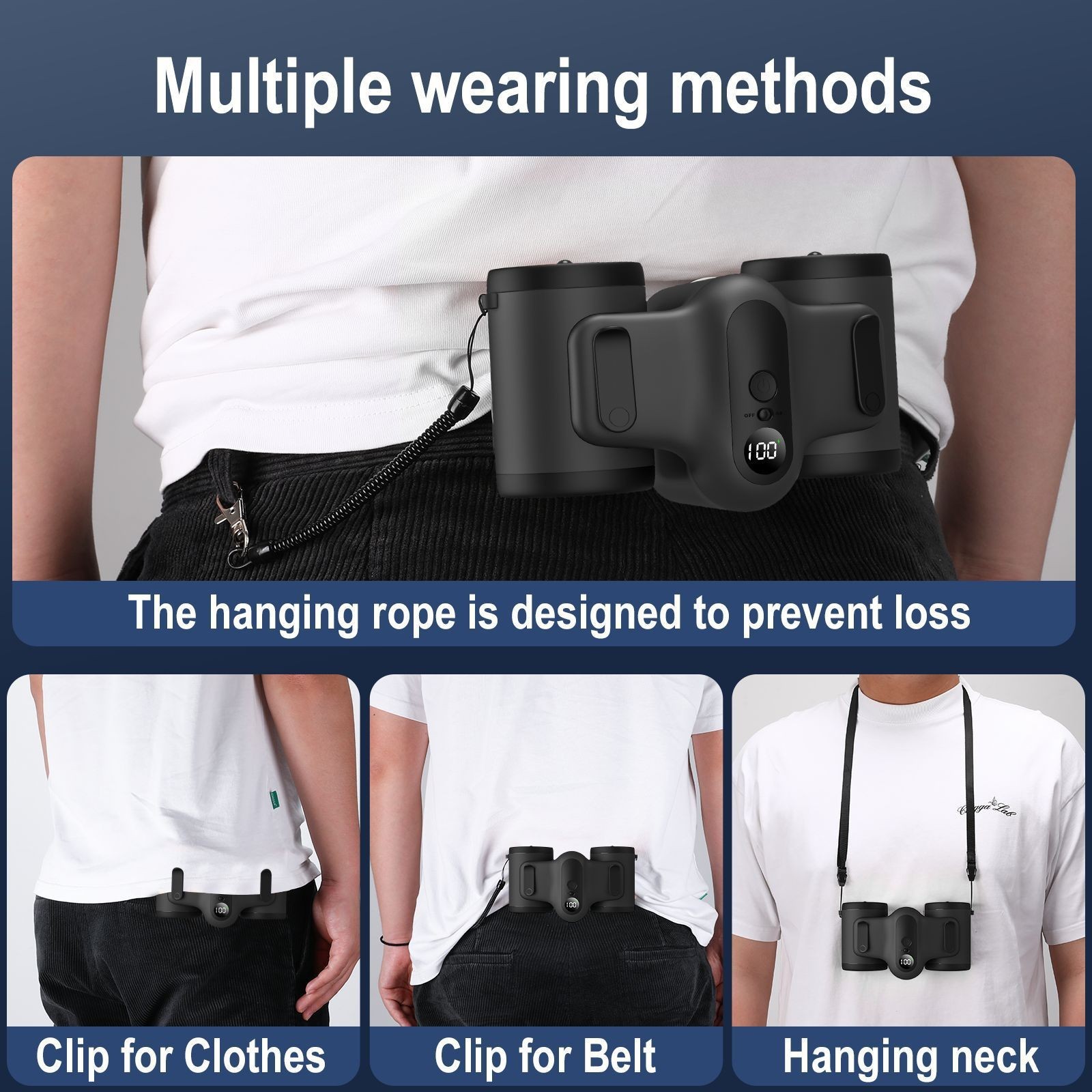 And it’s not just about the cool breeze. This waist fan is light as a feather and adjusts seamlessly to your body. You won’t even feel it’s there, but you’ll certainly enjoy the benefits. It’s also designed for effortless operation with an intuitive control panel, and it boasts a battery life that won’t quit on you. This isn’t just a device; it’s your passport to a cooler, more comfortable summer.