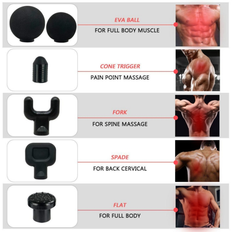6. 6 kinds of massage heads, using different massage heads according to different muscle characteristics.