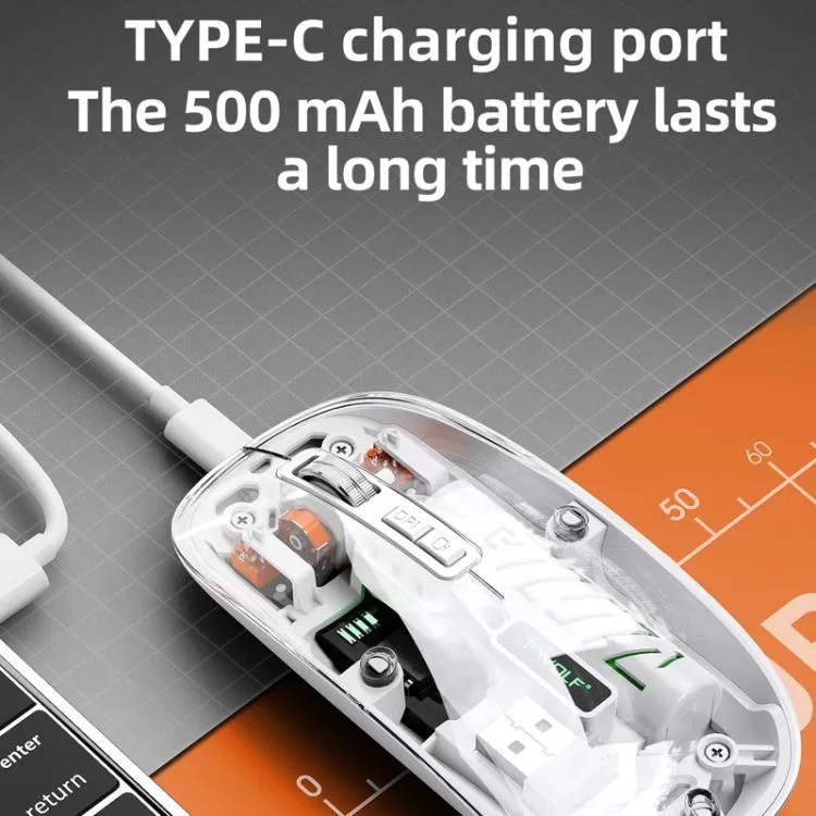 T-WOLF X11 Transparent Wireless Mouse – Dual-Mode Bluetooth & 2.4G, USB-C Rechargeable