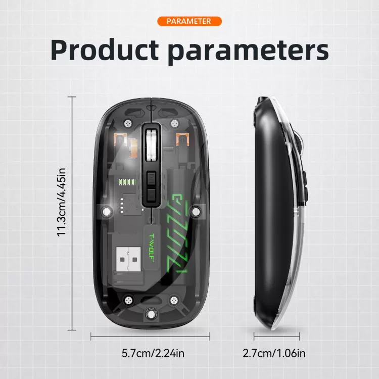 Be the first to review “T-WOLF X11 Transparent Wireless Mouse – Dual-Mode Bluetooth & 2.4G, USB-C Rechargeable”