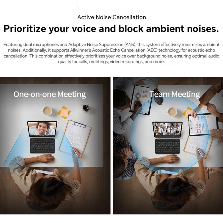 – Built-in stereo speakers and dual microphones for professional-grade remote calls or entertainment