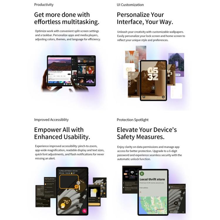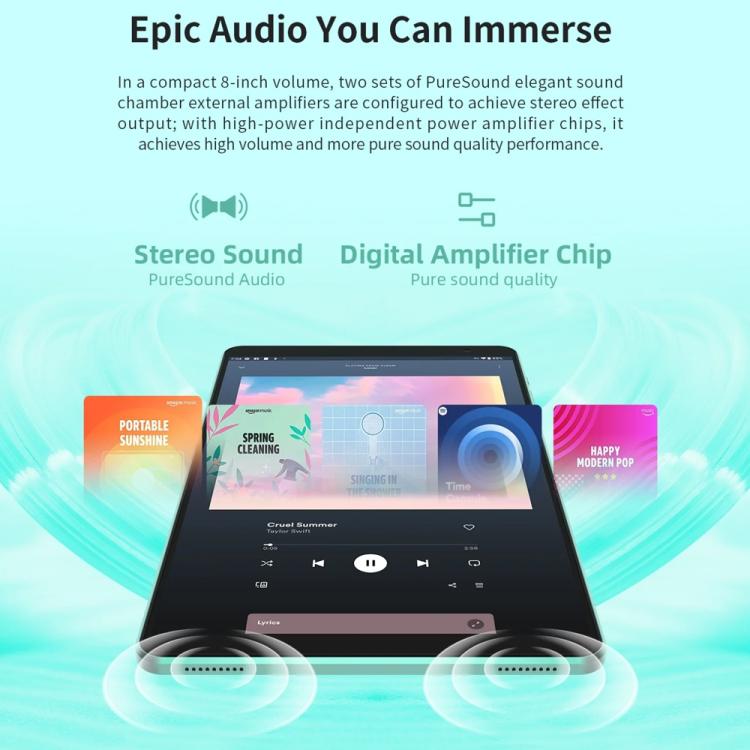 Whether you’re streaming your favorite shows, taking notes, or playing casual games, the ARM Mali-G57 GPU ensures lag-free graphics and smooth visuals. The PureSound Stereo Amplifier elevates your listening experience with rich, immersive sound.