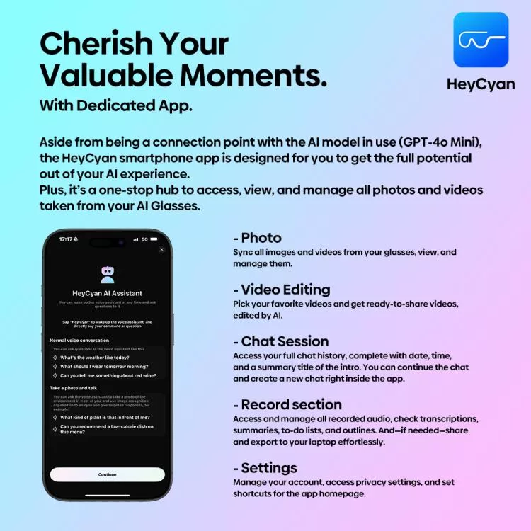 Tap into the brilliance of ChatGPT-4o with a simple voice command (“Hey Cyan”) or via the built-in AI button. From real-time translations and updates to your schedule or reminders, your personal AI assistant is always just a whisper away.
