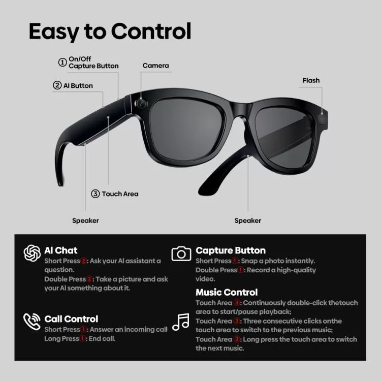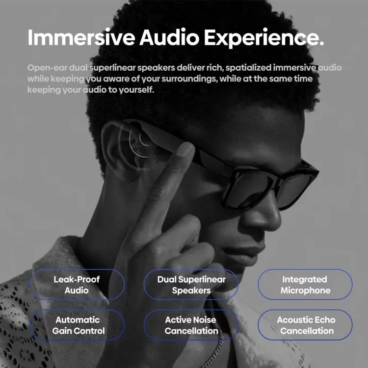 Featuring open-ear dual superlinear speakers, these glasses deliver immersive, spatial sound — so you enjoy your music, calls, or AI responses while staying fully aware of your surroundings. Ideal for workouts, commuting, or working hands-free.