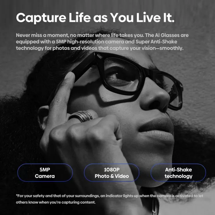 Equipped with a 5MP high-resolution camera and cutting-edge Super Anti-Shake tech, the Zeblaze AI Glasses let you shoot ultra-stable 1080P videos and vivid photos — no hands needed. Switch between 15s, 30s, or 60s recording lengths and focus entirely on the moment as you live it.