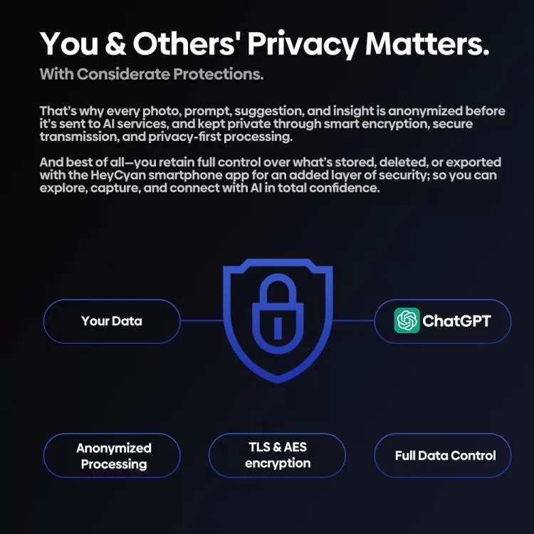 Every image, prompt, or voice command is anonymized and protected through enterprise-grade encryption and smart privacy-first processing. Stay in control of your personal moments — always.